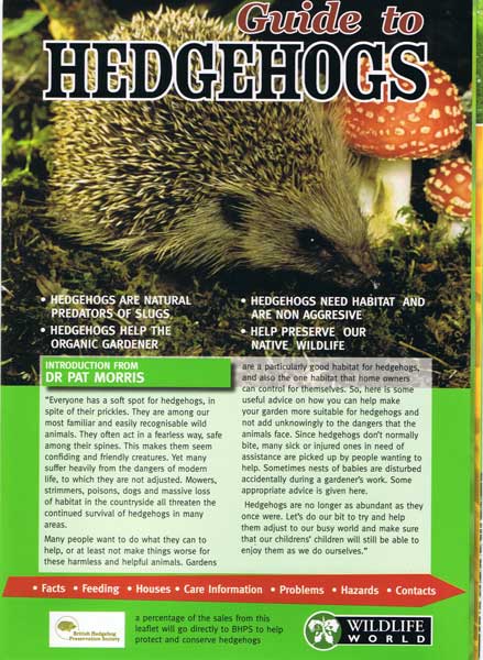 This four page, illustrated laminated guide to hedgehogs will provide you with the basic information on how to encourage hedgehogs to take up residence in your garden.