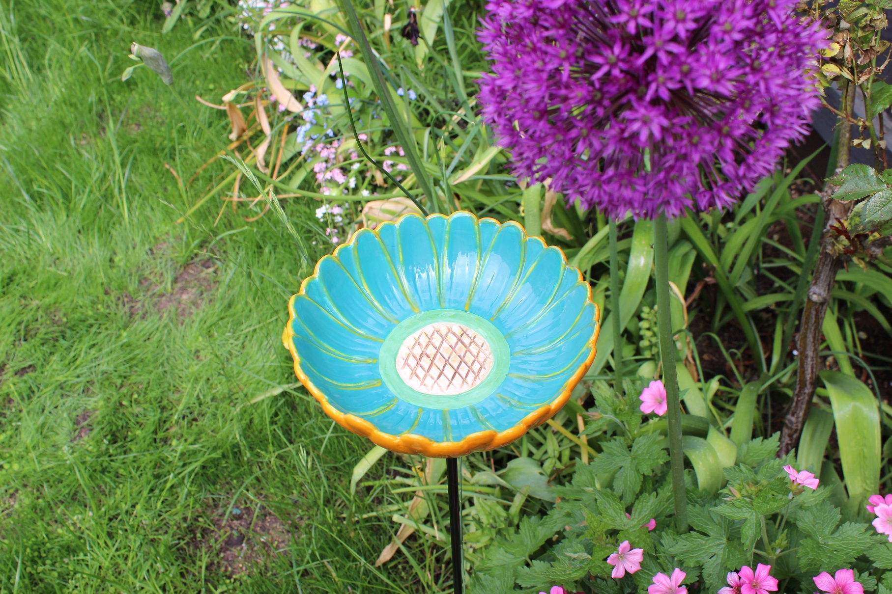 The colourful African Daisy Ceramic Bird Drinker is in the shape of, you guessed it, a Daisy. The attractive glazed ceramic flower design makes a delightful addition to any garden. The African Daisy bird drinker is easy to assemble with the threaded steel stem in four sections and the ceramic bowl on top. Designing the stem in four sections helps the product fit into a smaller box and reduce its carbon footprint.